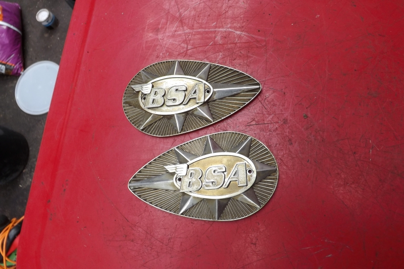 BSA pear shaped metal badgesGood condition, original ones not repro's, suitable for B25 and A65 motorcycles.