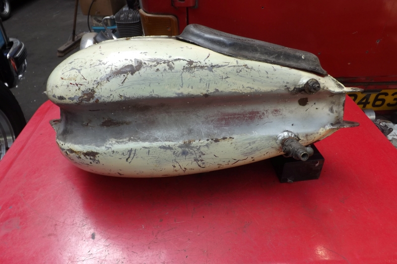 Triumph Terrier Petrol TankLooks as it has been converted to suit a trials bike to give more lock as they very often were, good and solid, few dings here and there, OK inside, hard to find these days.