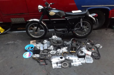 Unfinished restoration project, the bike was bought complete for restoration, it has matching engine and frame numbers, it has been stripped and then built back up, but not finished. As you can see a lot of money has already been spent, there are some duplicate parts where things have been replaced, there are bags with new parts in, oilseals, gaskets, clutch plates, bearings, springs etc. The frame and cycle parts have been stove enameled, the barrel has been rebored with a new JP piston, the wheels have been rebuilt with new chrome rims, stainless spokes and have brand new Metzeler tyres on. There is probably much more that I have missed, but I think that you can get the picture, a great project to finish off, comes with up to date V5C.