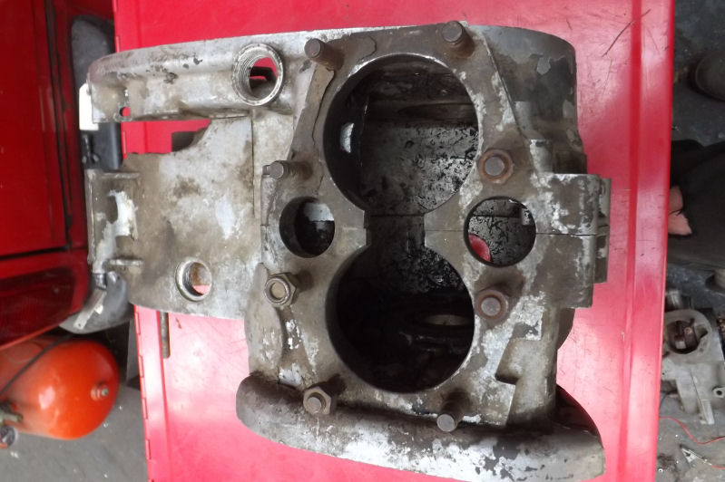 Triumph T100c crankcases 1971Matching pair, pretty good all-round apart from the usual damage from the chain coming off, still usable as is and can be repaired if required.