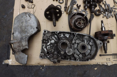 Ossa MAR bottom endHas been stripped at sometime for inspection, looks to be pretty complete apart from the clutch and outer case as well as some other extra items? Crank is seized, gearbox and clutch look fine, cases clearly stamped, approx 1972, outer case has been welded, ideal to repair or good source of spares.