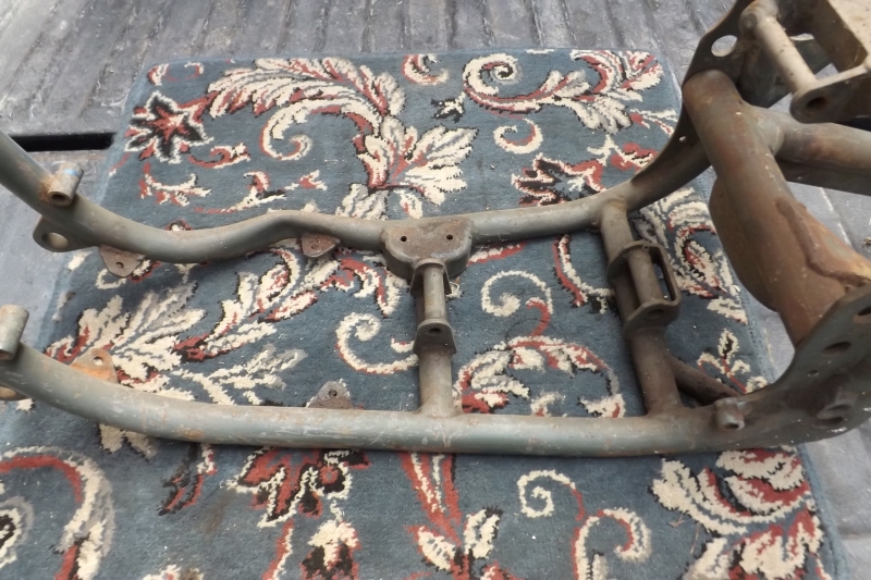 BSA B32 Competition FrameWould have been a Clipper if sent to the USA and according to the BSAO club, this one went to C Hayward in Ashford on 2nd October 1956. The frame has clear numbers, CB34.3-- Engine would have been originally BB32A prefix, a rare model in this country, as you can see it has had a sidecar attached and has been strengthened on mounting points as well as other places, all been very well done, a lovely frame for a worthwhile restoration, comes with swinging arm, no documents.