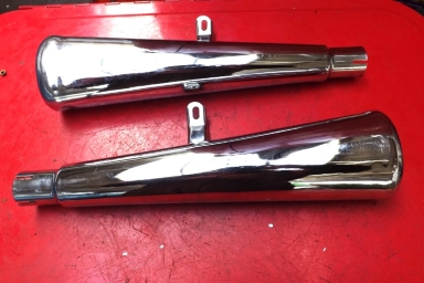 Matchless megaphone silencersNew old stock, came from shop clearout, not been fitted, have slight dent on one underneath, so can't be seen when fitted (pic 3). Price is for the pair.