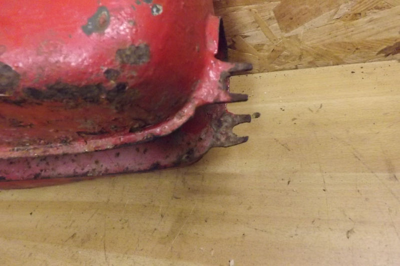 MV Agusta early single petrol tankThis is what I was told it was from, I have researched it and it looks to be one from a 125 or 175 late fifties to early sixties models. The tank is good and solid but does have some rust on the outside, the inside is very good and the fancy quick release cap works fine, it also looks to have had the brackets opened up/altered, maybe to fit something else?