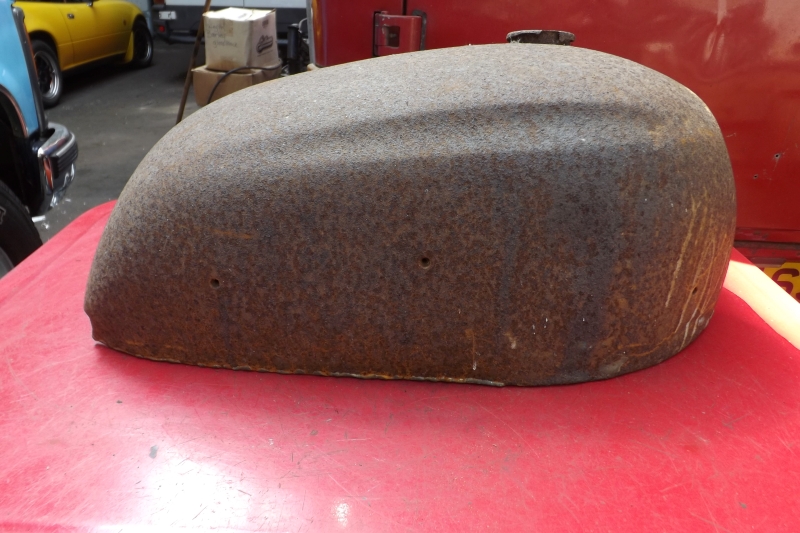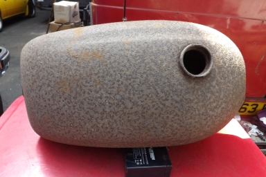 Norton Slimline Petrol TankLooks to have been blasted and repaired in the past as you can see, but unfortunately has been left to go rusty again, but still good and solid.