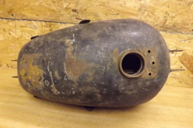 Triumph Tiger cub Petrol TankGood solid condition, has some light surface rust on outside, looks good and clean inside, one dent in the front right hand side and unfortunately has had 3 holes drilled in the top by the filler cap, ok if you are a good welder, hence price.