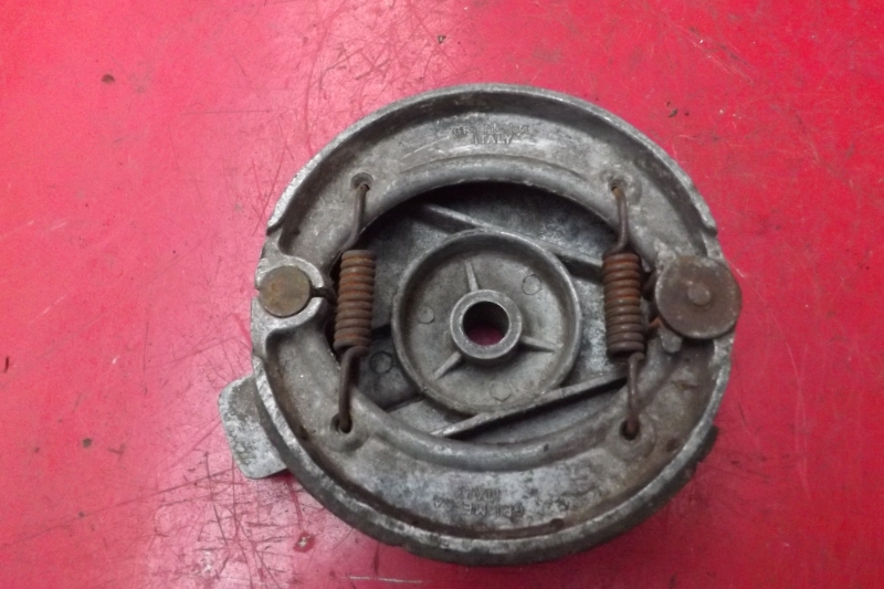 Garelli Tiger cross Grimeca front brake plateAlso fitted to other models and makes, good condition, needs a good clean and new linings, but all there and scarce these days.
