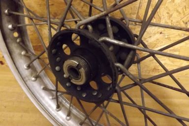 Harley Davidson early front wheelGood condition, complete with all bearings and retainers, alloy rim, looks like early Borrani stampings, nice wheel.