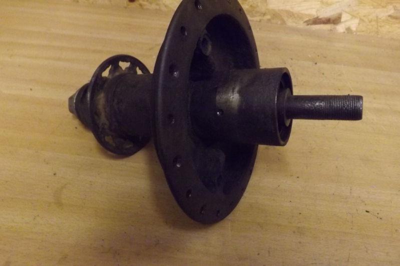 Royal Enfield early Bullet back hubComplete with spindle, no brake drum or sprocket, will also fit other models.